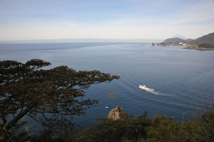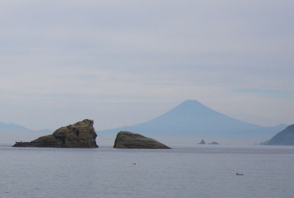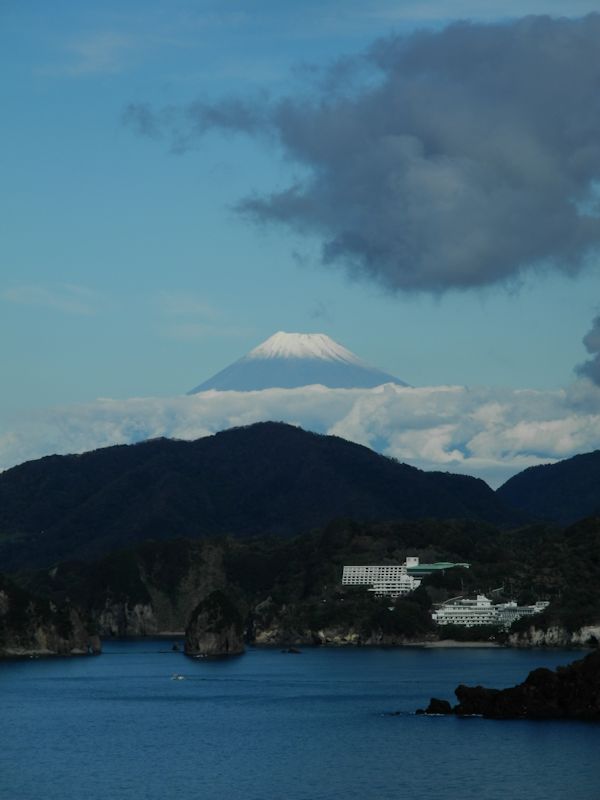 - 今日の松崎町は昨日に引き続き、曇り空の1日となりました。しかしながら、駿河湾の空気が澄んでいたためか富士山をきれいに望むことができました。
