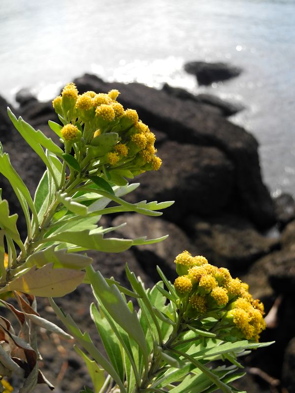 - 松崎海岸のにある弁天さんでは、黄色いイソギクの花が咲いています。