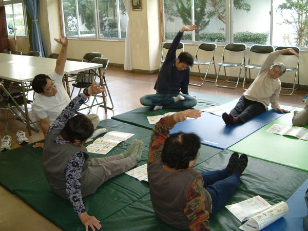 - 旧中川小学校多目的ホールでは、松崎十字の園の理学療養士の方を講師に迎え、筋力低下やバランス能力低下の予防・改善を目指した教室が行われました。