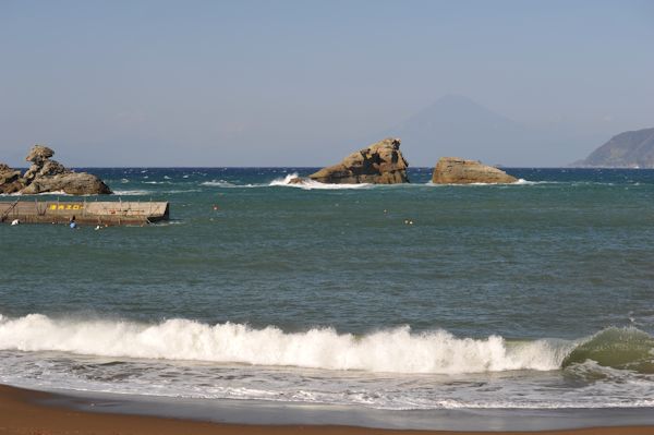 - 今日は、海岸線から雪を被った富士山を眺めることができました。