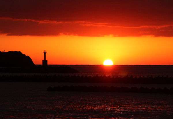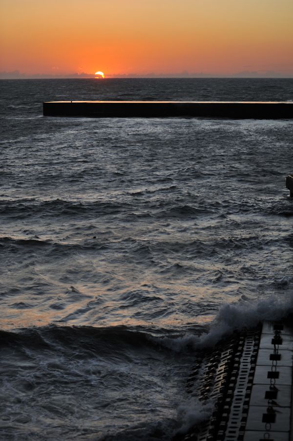 - 雨はやみましたが、風の強い一日となりました。 白波立ち、荒れた海のようでしたが、きれいな夕日が望めました。