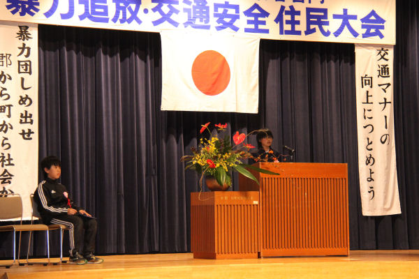 - 環境センター文化ホールでは、暴力追放交通安全住民大会が行われ、松崎小学校の児童と松崎中学校の生徒による意見発表や講演などが行われました