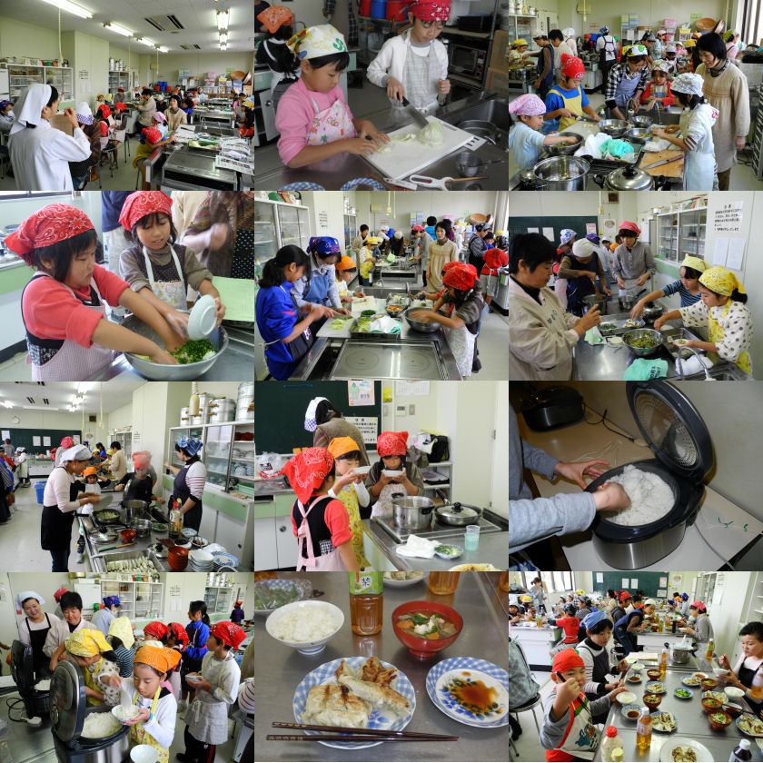 - 環境センター調理室を会場に、棚田百笑くらぶでは料理教室を行いました。 栄養士の森先生の指導のもと、石部棚田で取れたピカピカの新米と、地元の野菜をふんだんに使ったとん汁、一口餃子を作りみんなで味わいました。 お米もおかずも美味しくて、みんなたくさんお代わり