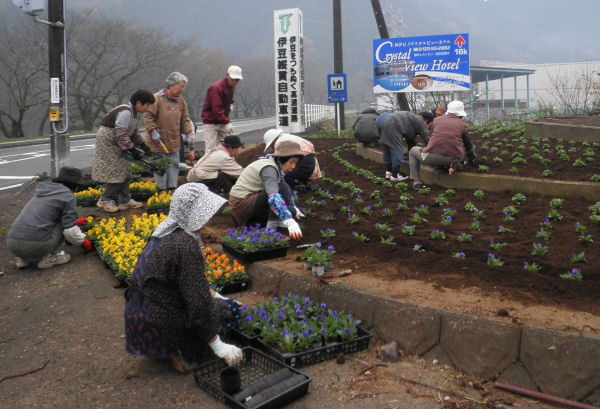 - 松崎町花の会の皆様によって、県道下田松崎線沿いにある建久寺花壇の植替え作業が行われました。