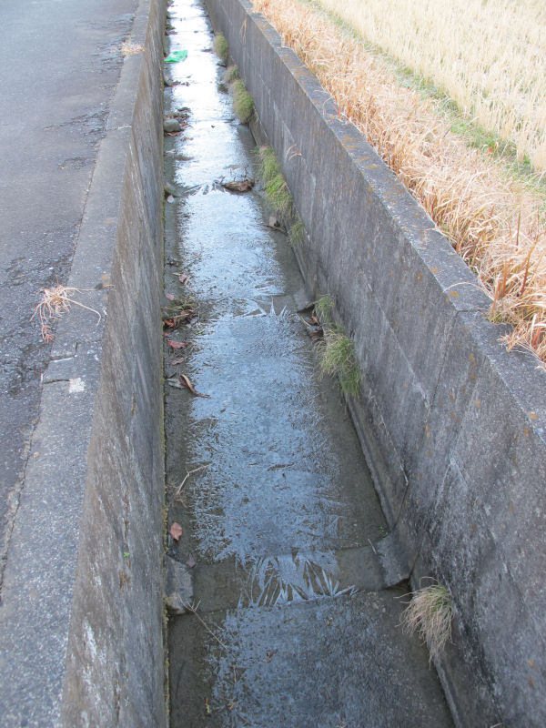 - 今日の松崎町は、今年1番の冷え込みとなりました。青空の広がる西風も吹かない静かな1日でしたが、朝には、霜が降り、流れの少ない水路では、氷が張っていました。