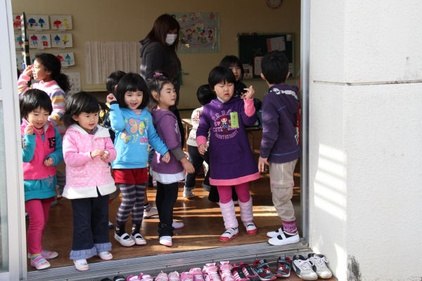 - 今日は節分です。松崎幼稚園では、園児たちが外に向かって元気に「鬼は外」と叫びながら豆をまきました。