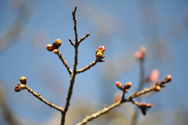 - 中川建久寺鳥居横の早咲きの桜のつぼみが膨らみ始めました。 ピンクの花が開くのが待ち遠しいです。