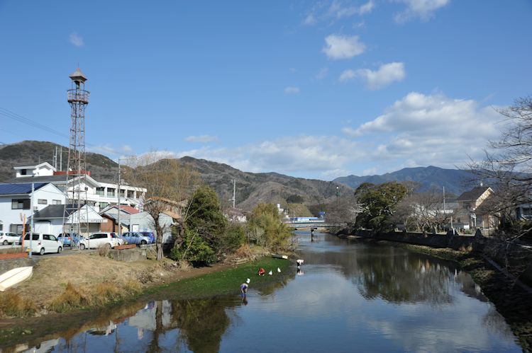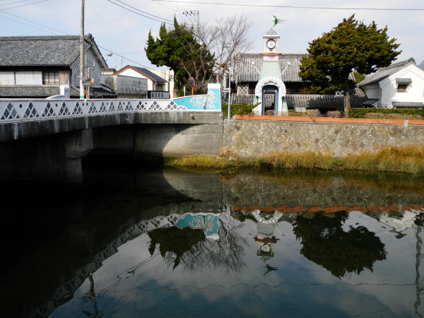 - 今日の松崎町は、強風がやみ、寒い中でも穏やかな日和となりました。那賀川の川面には、時計塔が鏡のように写っています。