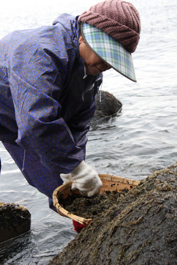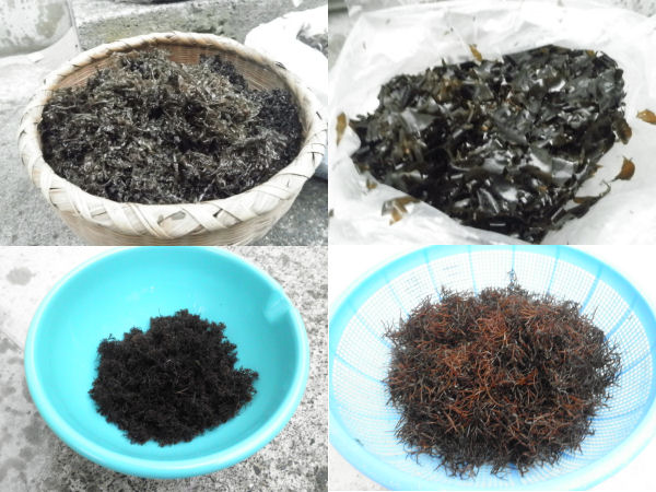 - 本日、松崎町岩地地区では「岩のり採り」が解禁となりました。 左上「岩のり」右上「はんば」左下「ふのり」右下「いそな」と呼ぶそうです。