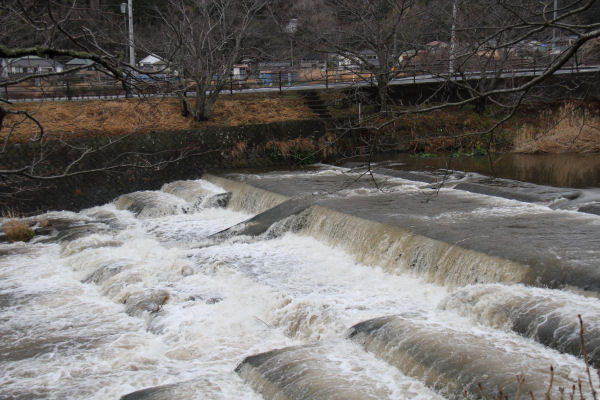 - ひさしぶりのまとまった雨となり、町内の河川は増水し、茶色く濁っていました。