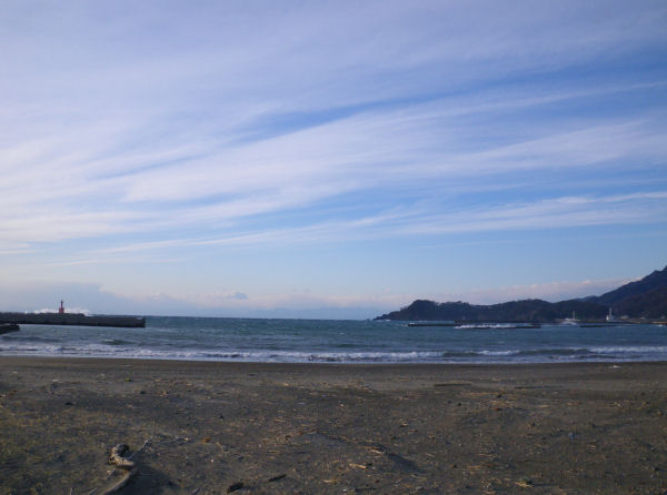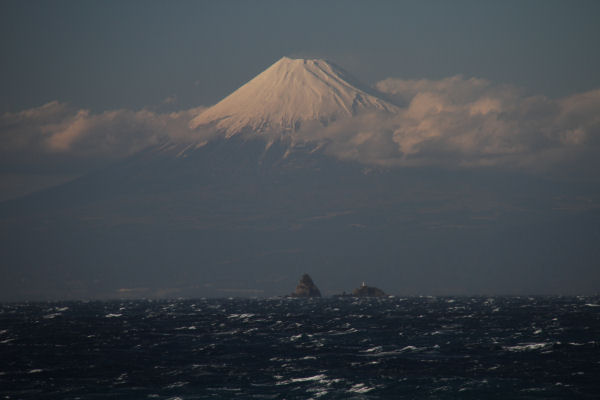 - 今日は、昨日までの雨模様の天気から一転し、快晴の1日となりました。西風がとても強く吹きましたが、海岸線から見える富士山は雪化粧をし、きれいな姿を見せていました。