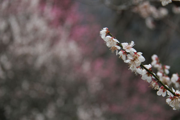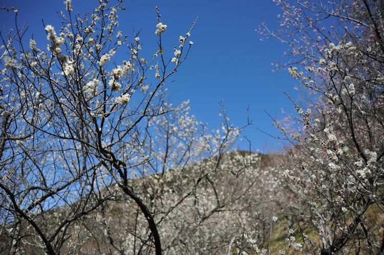 - 牛原山梅園では、紅白の梅がきれいな花を咲かせています。