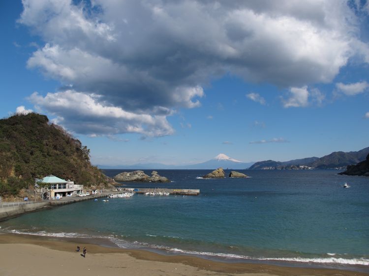 - 晴天に恵まれた今日、雲見海岸からはきれいに富士山を望むことができました。