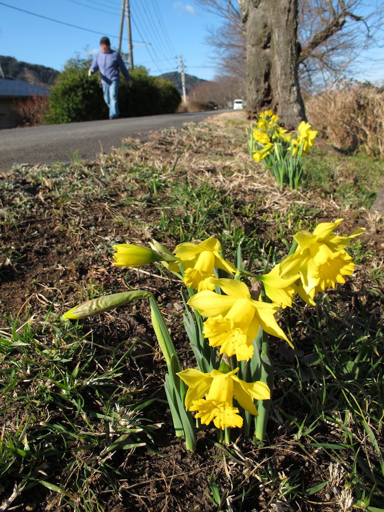 - 那賀川の土手に、鮮やかに黄色い花を咲かせたスイセンを見つけました。 寒い日が続いていますが、このような発見に、気持ちがほっこりしてきます。
