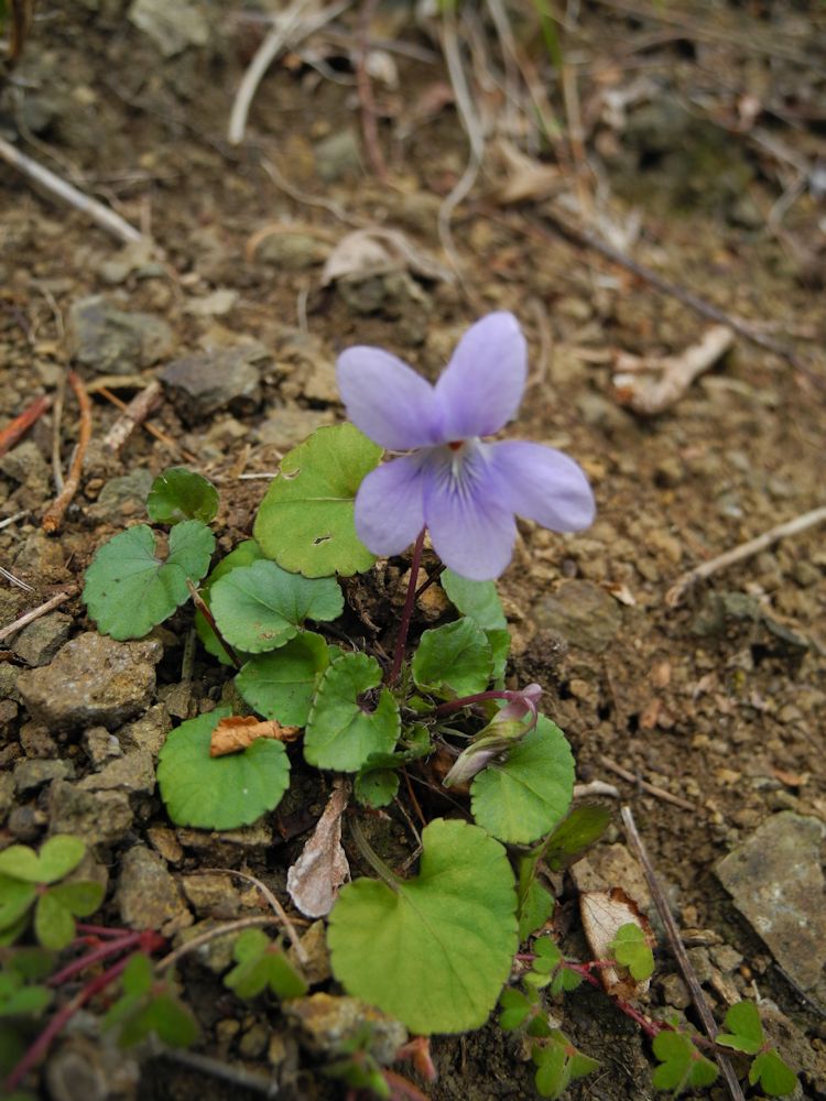 - 牛原山では、日溜まりに紫の花を咲かせているタチツボスミレを見つけました。