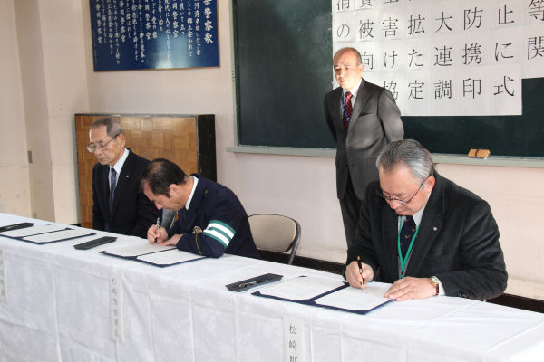 - 松崎警察署にて、松崎町、西伊豆町、松崎警察署との間で、悪質商法など消費生活侵害事犯の被害拡大防止を目的に協定が締結されました。この協定により、悪質商法と疑われる情報の迅速な提供等を通じ、町と警察が連携し、被害拡大防止や再発防止を図ります。