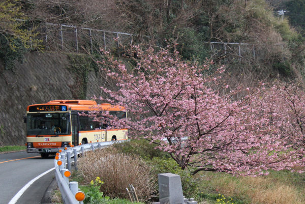 - 雲見入谷バス停付近では、早咲きの桜が見ごろを迎えています。