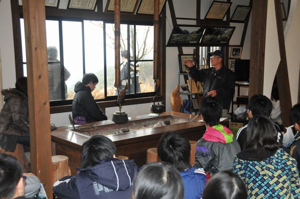 - 石部の棚田では、日大三島高校の1,2年生33人が体験学習に訪れました。本来であれば、アゼ切り作業を手伝っていただく予定でしたが、あいにくの雨となる天候だったため、交流棟にて棚田の歴史などについて学びました。