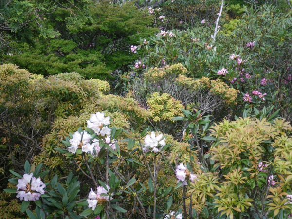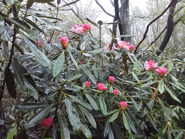 - 今日の長九郎山のシャクナゲです。 八瀬峠付近のシャクナゲは、先日29日の調査時に比べ、だいぶ花が目立つようになりました。