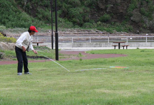 - 同じく、遠投大会の後には、ルアーでの射的大会も行われました。参加者は力加減等を調整しながら、慎重に的を狙って投げていました。