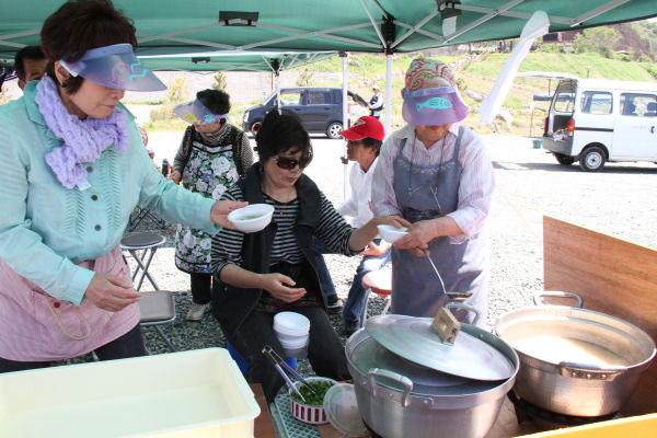 - 同じく松崎新港では、お味噌汁の無料サービスも行われました。お味噌汁のサービスは明日も予定されています。