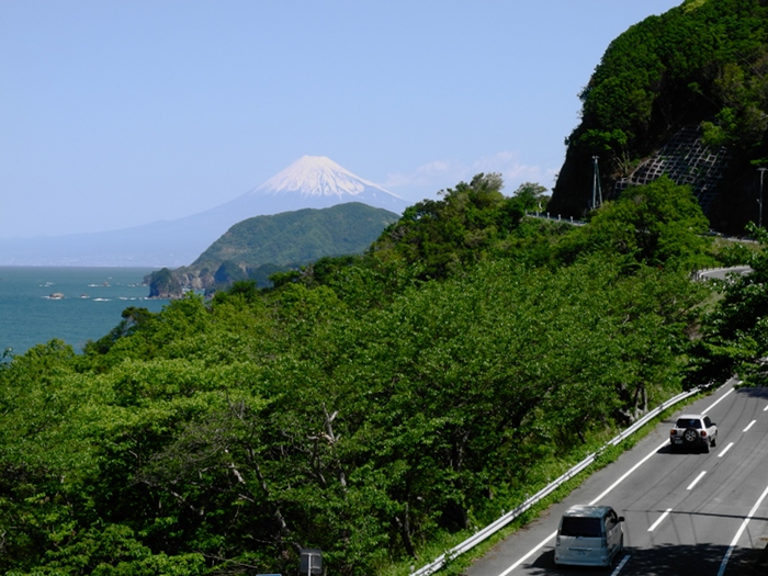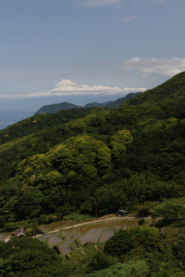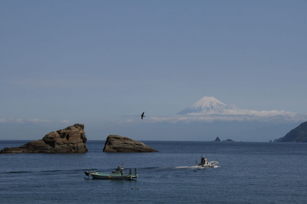 - 雲見海岸からの富士山の眺めです。富士山に少し雲がかかっていましたが、天候は良く、ツバメが元気に飛び回っていました。