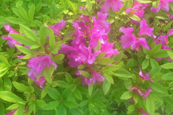 - 花畑でにぎわった那賀バイパスでは、ツツジが咲き始め、見頃を迎えています。