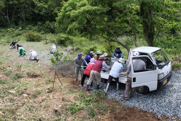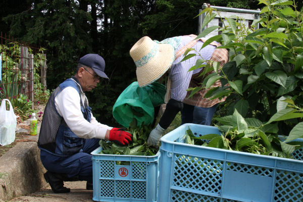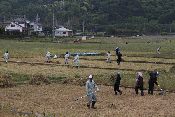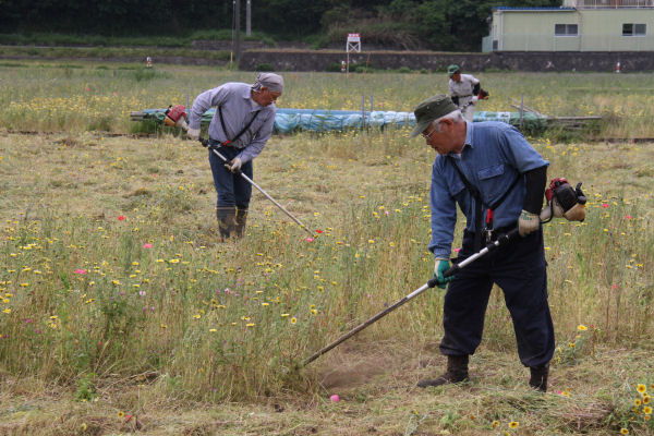 - 花の刈取り作業は、特別支援学校伊豆松崎分校の生徒にも協力していただき、田おこしの準備が着々と進んでいます。