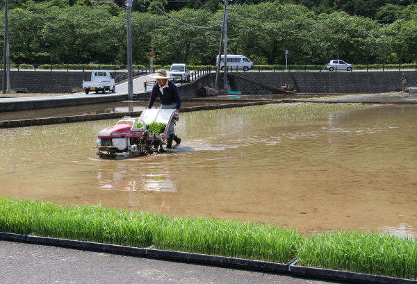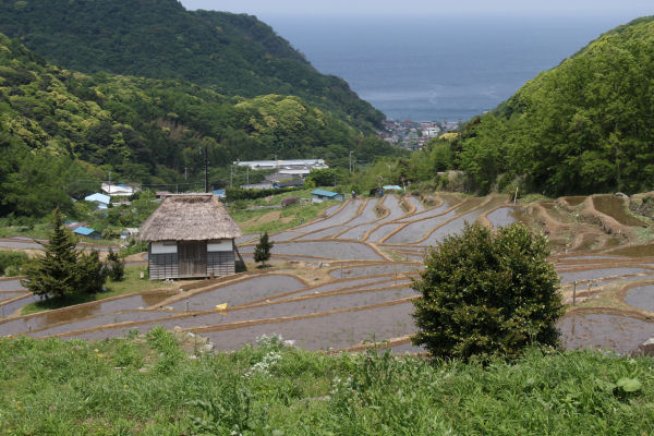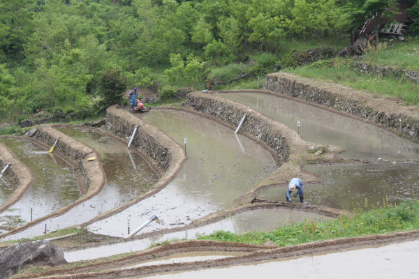 - 同じく今週末の12、13日に田植え祭が予定されている石部の棚田では、代掻きなど田植えの準備が進んでいました。