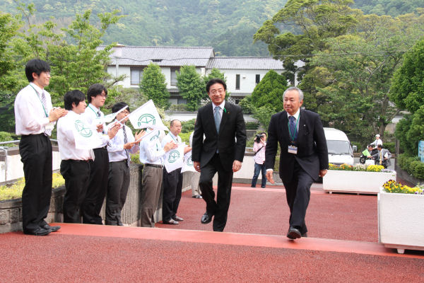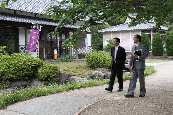 - 昨日表敬訪問に訪れた米沢市長は、今日、勉三翁の墓参りや「道の駅」花の三聖苑などを見学しました。