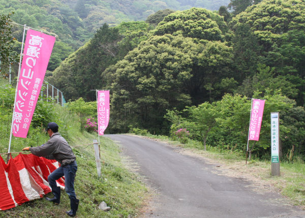 - 雲見高通り山では、つつじまつりが行われました。登山道入口付近では、ところてんなどのサービスコーナーが設けられ、山頂ではオリーブ茶や甘夏が振る舞われていました。