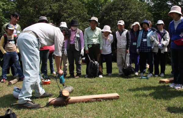 - 牛原山では、春の森づくり県民大作戦「きのこの山づくり」と題し、シイタケとナメコの菌打ち体験が行われました。早ければ来年の春頃収穫できるそうです。
