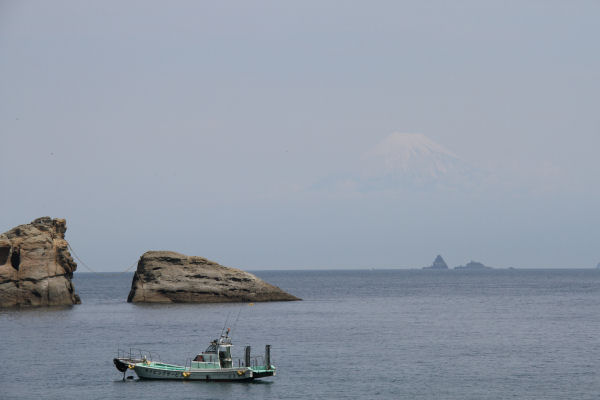 - 雲見海岸から眺めた富士山です。霞んでいましたが、他にも富士山の眺めを楽しんでいる方がいらっしゃいました。