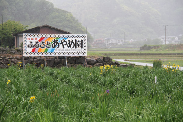 - 道部にある「ふるさとあやめ園」です。道部の総合グラウンドの県道を挟んだ向かい側にあり、看板が目印となっています。重文岩科学校の前にもあやめ園のあやめが植えれており、これからの開花が楽しみです。