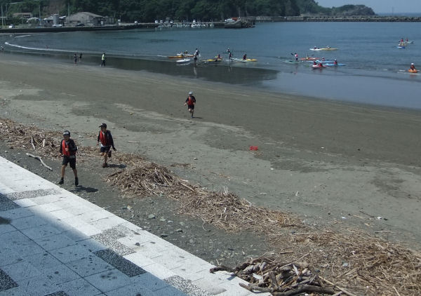 - 松崎海洋クラブでは入団式が行われ、8月まで毎週土曜日のカヌー訓練が始まりました。 第1回目の今日は、津波対策として海岸近くのホテルの建物へ向かう緊急上陸訓練も実施されました。
