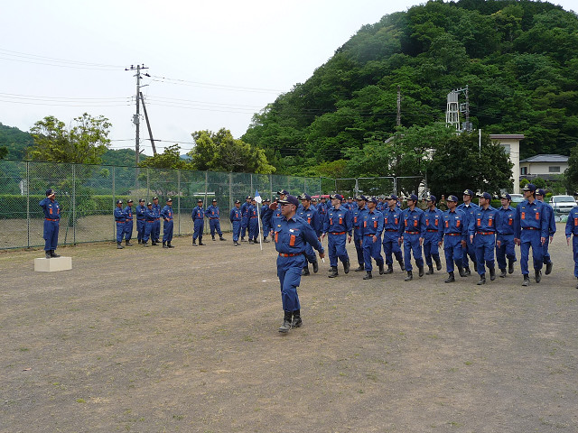 - 松崎町消防団は本日、総合グラウンドにおいて、陸上自衛隊員を講師とした規律訓練を行いました。 新入団員と幹部団員を対象に実施し、最後には分団ごとに分かれ、本日の訓練の成果を披露しました。
