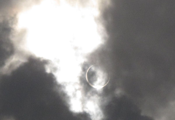- 今日の松崎から見ることのできた金環日食です。 厚い雲が広がり、観測に適した天気とは言えませんでしたが、時折雲の合間から光の環を確認することができました。