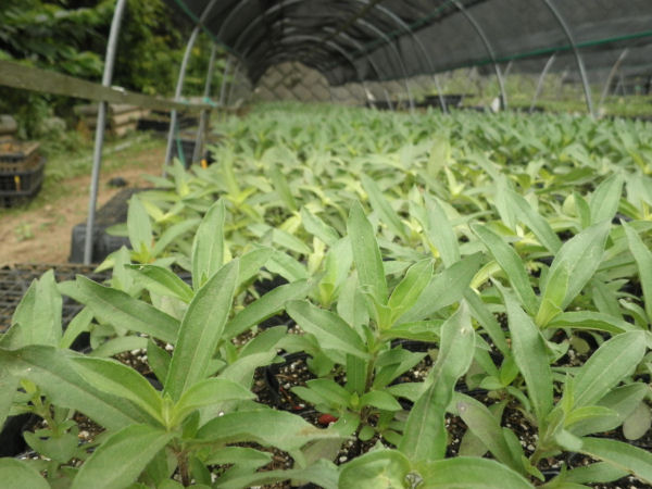 - 町内育苗畑では、ジニアの苗が順調に成長していました。