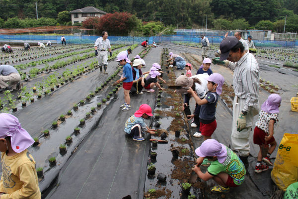 - 農業再生協議会が主体となって、ハーブ苗の植え付けを行いました。松崎幼稚園中川園の園児も作業を手伝いました。このハーブ栽培は、耕作放棄地の解消と6次産業化を推進し、地域農業の振興を図ることを目的に取り組まれています。