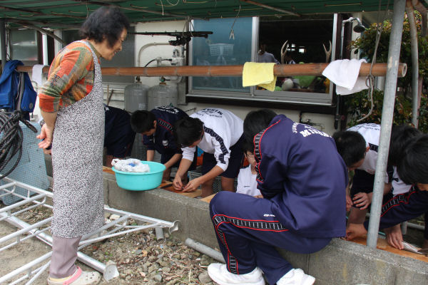 - 岩地地区に、自然体験教育の行事で三島の中学生が訪れています。1日目となる今日は干物づくりなどを体験しました。明日は地引網体験などが予定されています。