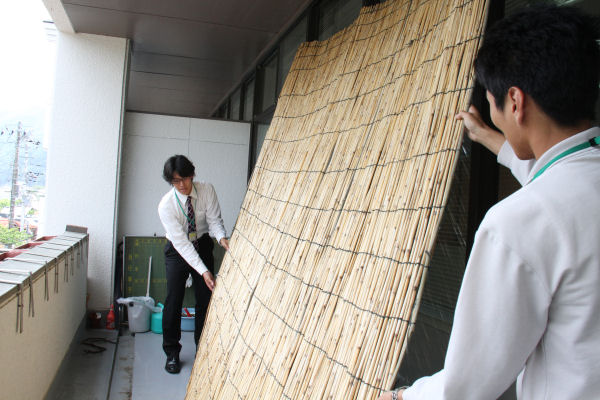 - 松崎町役場では、節電への取り組みとして、今年は窓辺やベランダによしずを設置しました。