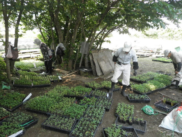- 宮内の苗畑では、成長した苗を明日、各団体に配布するため、仕分け作業を行いました。