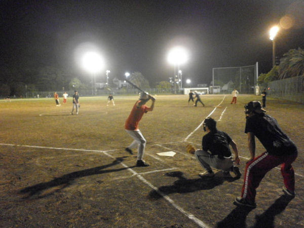 - 5月24日から始まった生涯学習ソフトボール春季大会の昨夜の試合の様子です。12チームが1部リーグ、2部リーグに別れ、試合を行っています。