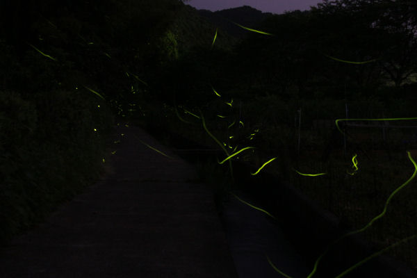 - 雲見花沢園地のホタルです。200匹近くのホタルが飛び交うようになり、観賞に訪れた方たちは幻想的なホタルの光を楽しんでいました。