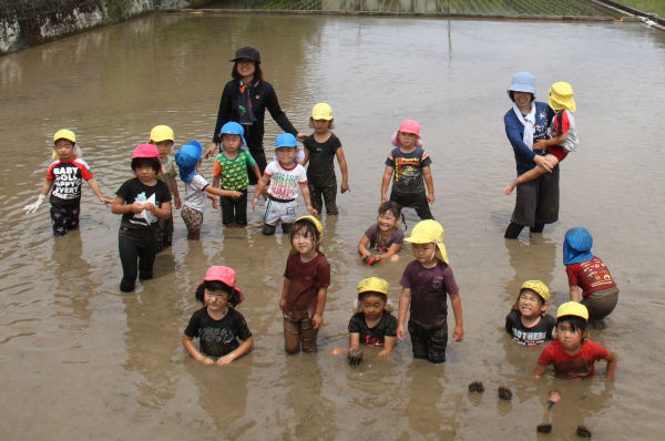 - 松崎幼稚園岩科園では、田植え前の田んぼで、泥遊びをを行いました。田んぼには「楽しい!」「面白い!」と全身を使って泥遊びを楽しむ園児たちの元気な声が飛び交っていました。