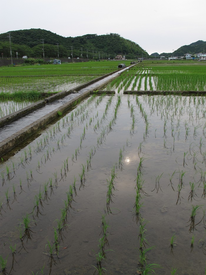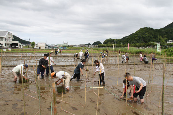 - 桜田地内の田んぼでは、田んぼアート有志開拓団による田植えが行われました。9月末頃には6色の稲に彩られた田んぼアートが見ごろを迎える予定です。