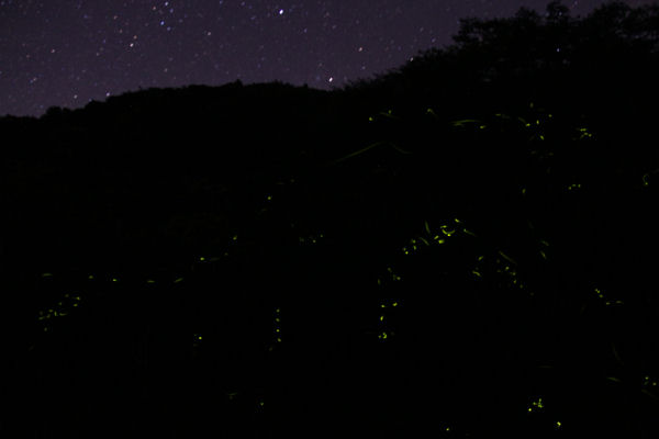- 先週半ばごろから100匹以上のホタルが飛び交い始め、今まさに見ごろを迎えている雲見花沢園地のホタルです。昨夜は星空もきれいに見え、ホタル観賞に訪れた方々は、星空とホタルの両方を楽しんでいました。