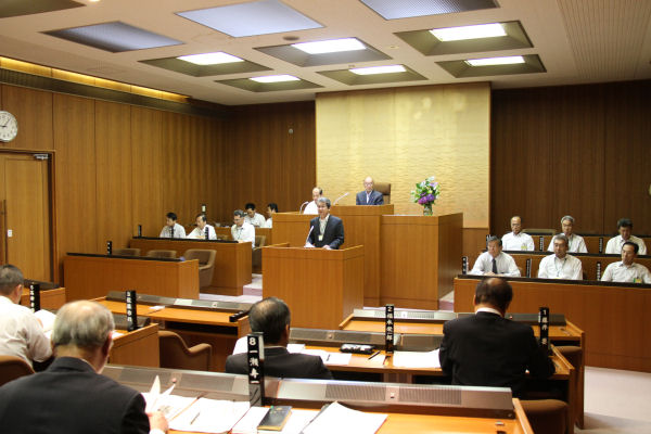- 役場議場では、第2回定例会が開催され、行政報告や一般質問が行われました。