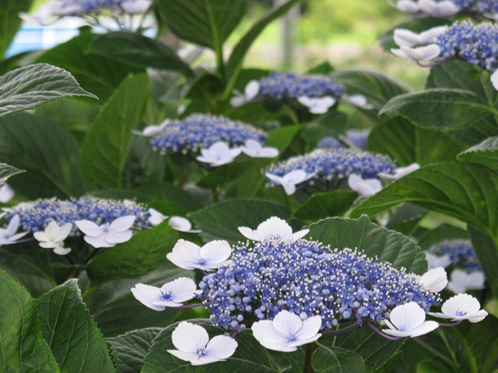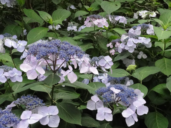 - 町内各所で、ガクアジサイが見ごろを迎えています。 道路沿いなどのアジサイも鮮やかに色付き、日に日に色濃くなっているようです。