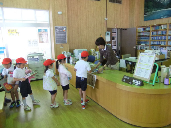 - 松崎小学校の1年生が、先月末に図書館の使い方を教わったときに自分で借りた本を返却しにきました。 町立図書館には、約3万冊の本があります。また、県内約100館の図書館の本についても、リクエストをすれば借りることができます。 ぜひ、ご利用ください。